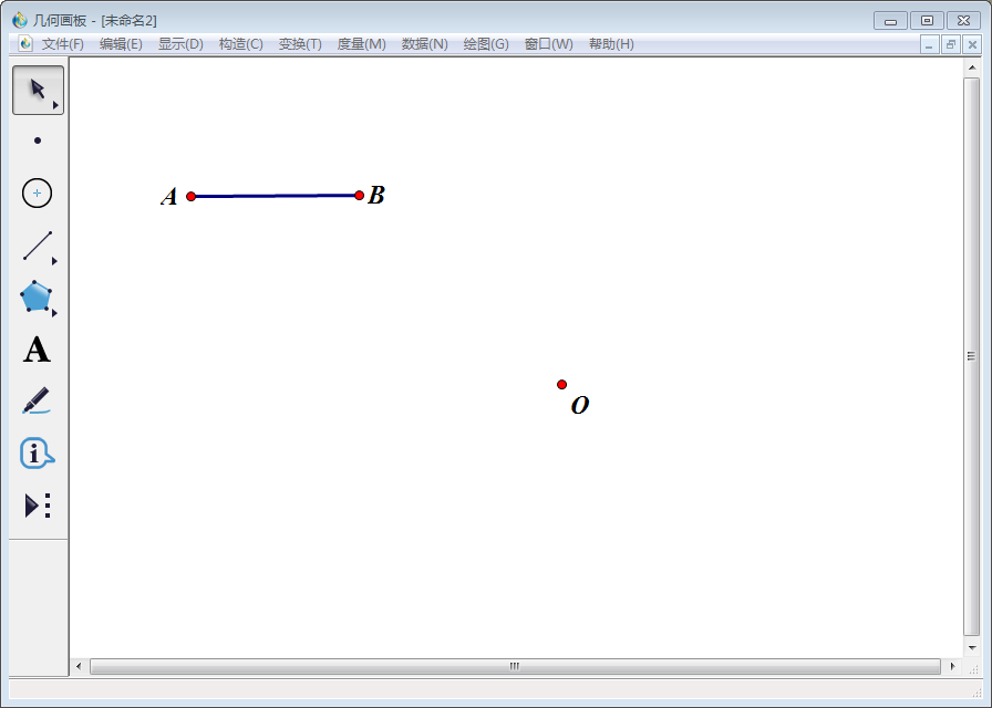 2、点击左侧工具栏中的【点工具】,在线段AB以外的适当位置任意取一个点,使用【文本工具】将该点标为O。