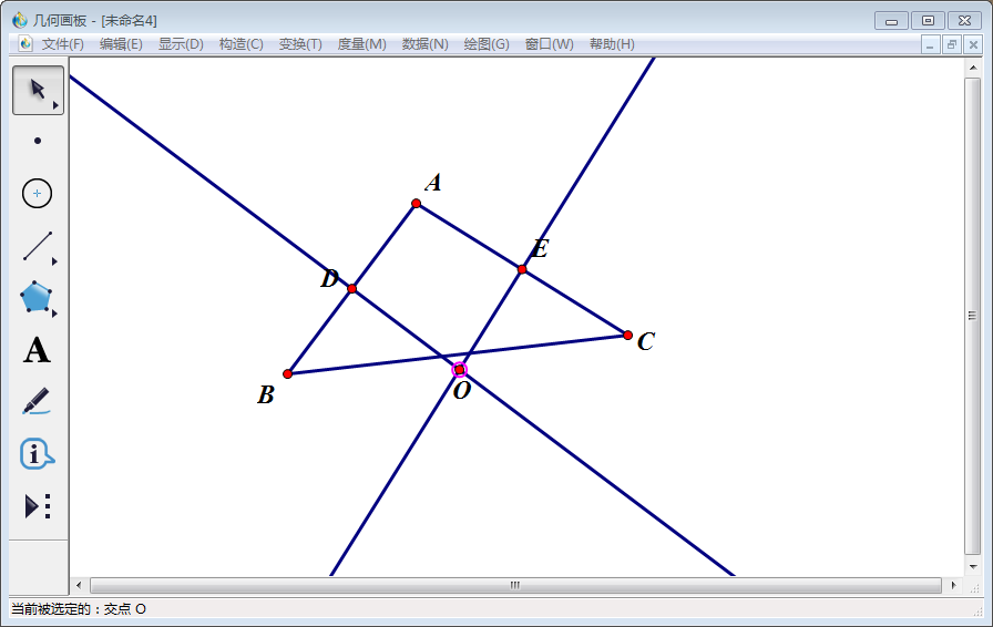 5、使用【文本工具】将两个中点分别标为D、E。