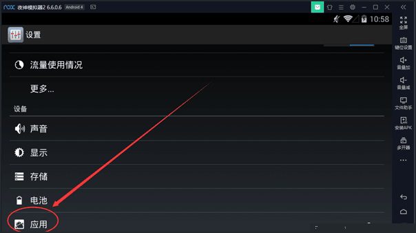 1、打开夜神模拟器,在应用中找到并点击【设置】。