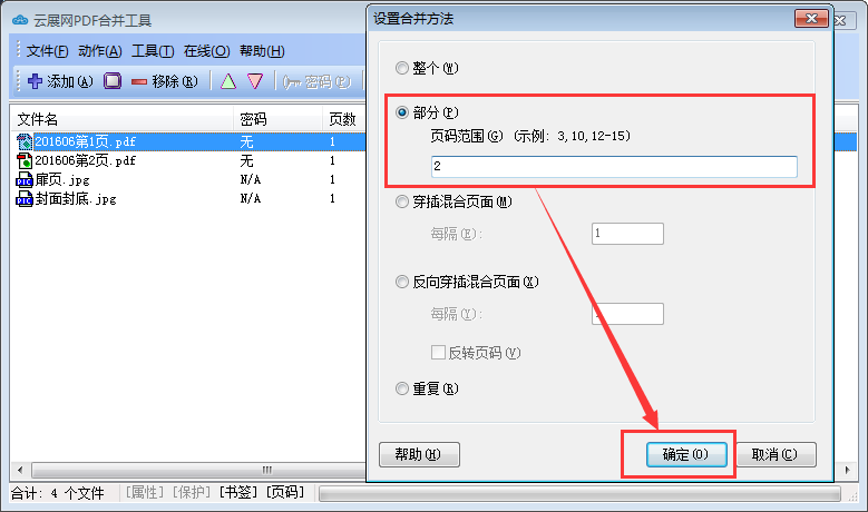 3、云展网PDF合并工具默认合并的是整个文件,如果用户只需合并部分文件,那么就需要改变文件的合并方式。具体步骤如下: