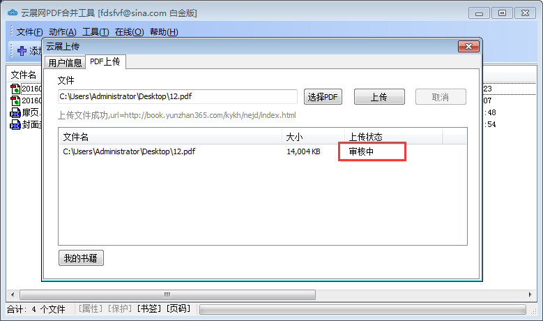 4) 上传的PDF文件在下方列表中出现,上传状态处于“审核中”。