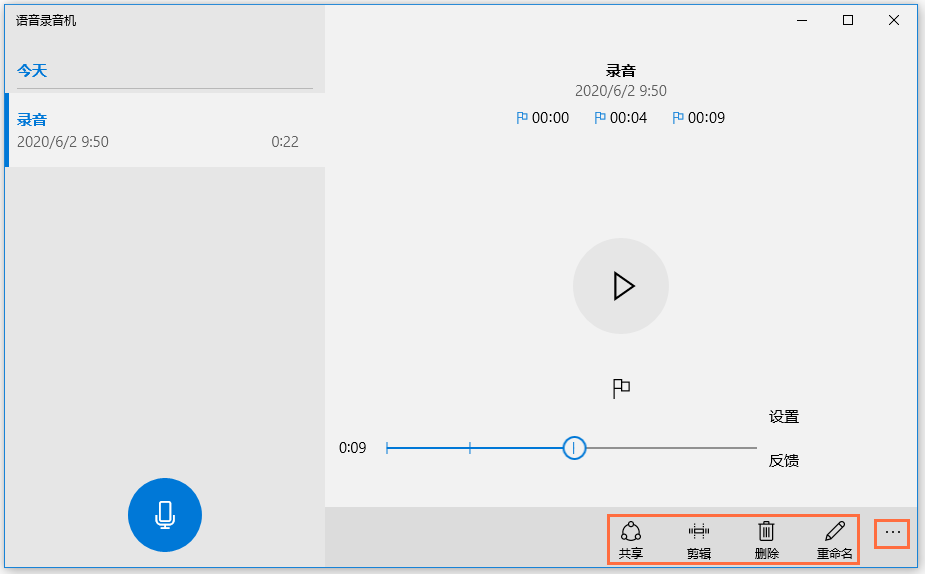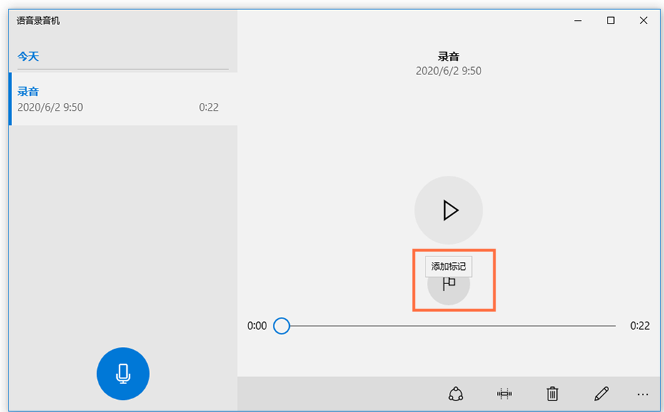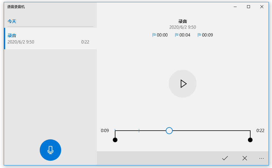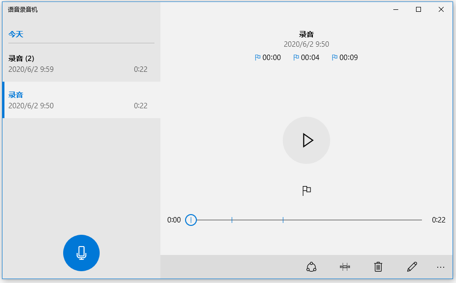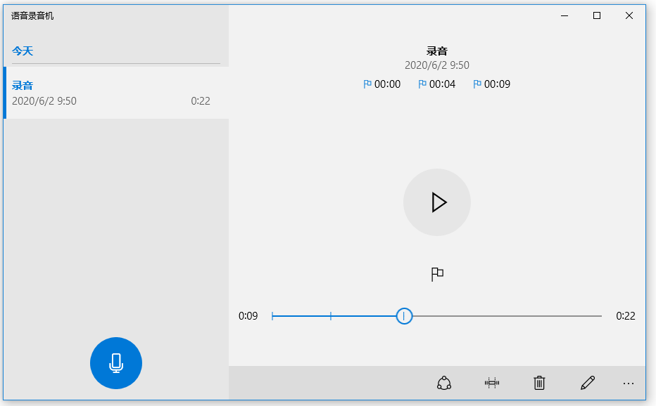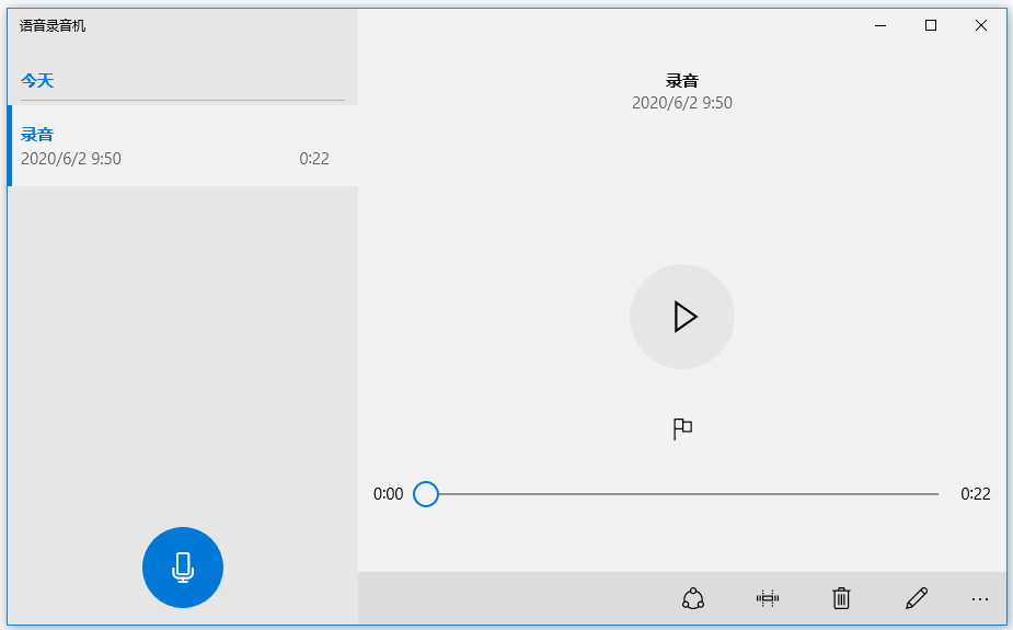 录制完成,点击蓝色按钮,如图,这里会显示录音文件的录制日期和时长,你还可以进行简单编辑,