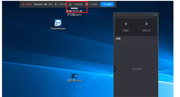 进入直播窗口,如图,查看上方工具栏,点击【多群联播】,