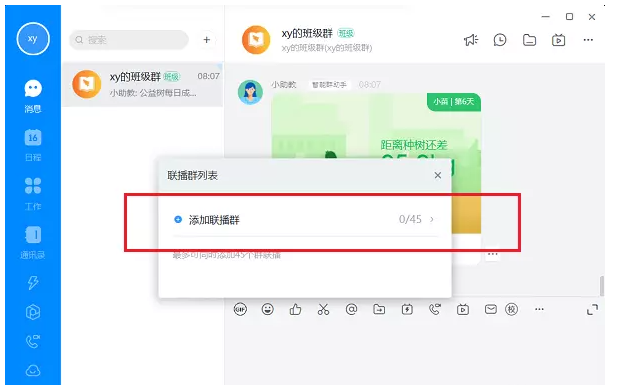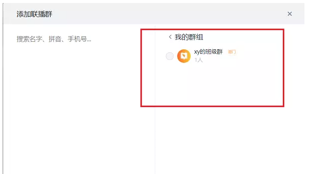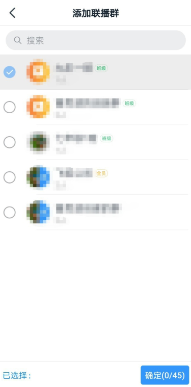 进入添加联播群界面,选择需要同时进行直播的群组,点击确定,可以实现多群直播。