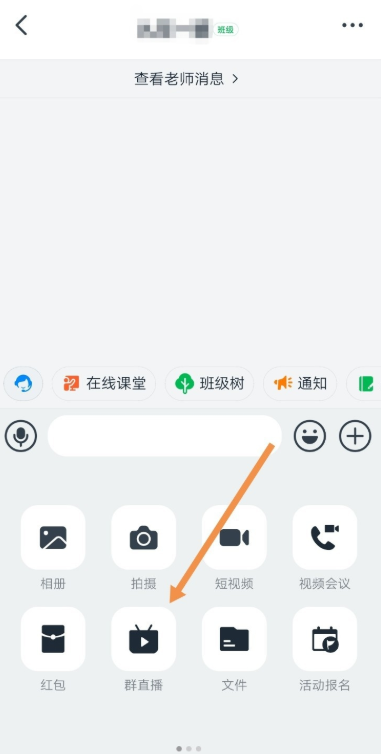 在手机中打开钉钉,进入界面,点击一个群聊,进入聊天窗口,然后点击下方的【+】——【群直播】,