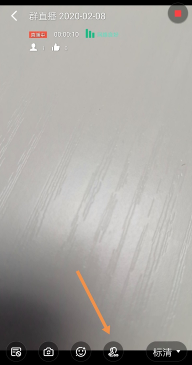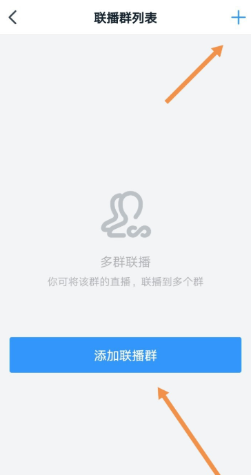 进入群直播窗口,如图,点击下方的小人图标,点击【添加联播群】或者【+】,