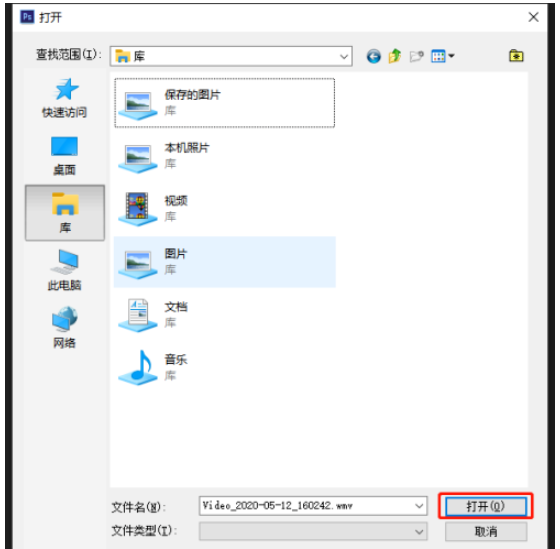弹出对话框,选择需要处理的视频文件,点击【打开】,