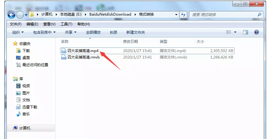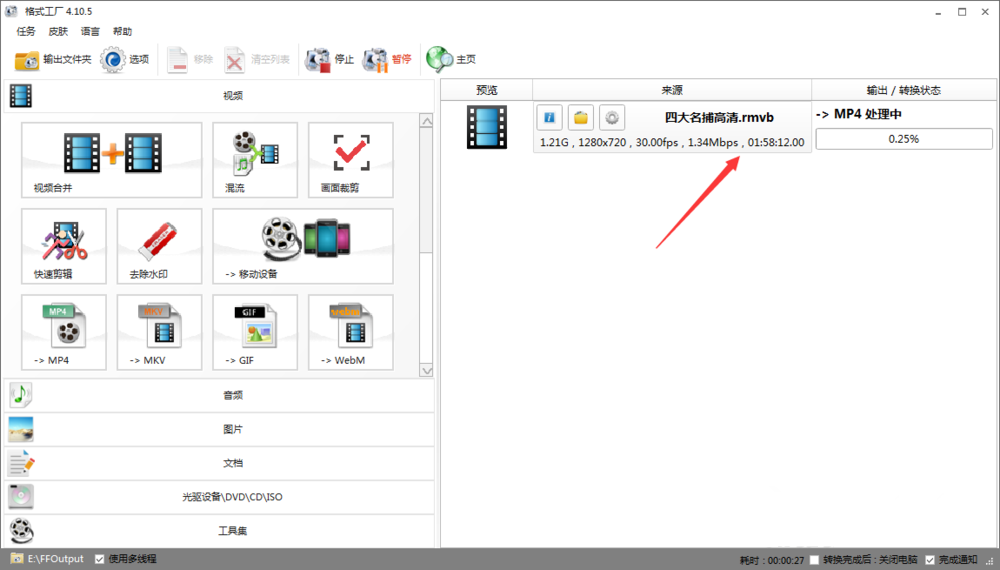 等待进度条到达100%,说明视频转换完成,去到输出目录,即可找到转换之后的MP4视频文件。