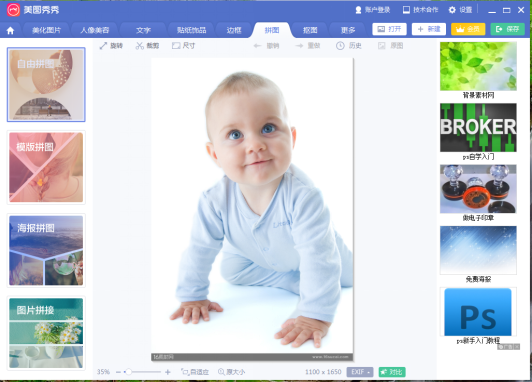 3、在打开的自由拼图界面中,点击左侧“添加多张图片”,再加入一张宝宝图片。