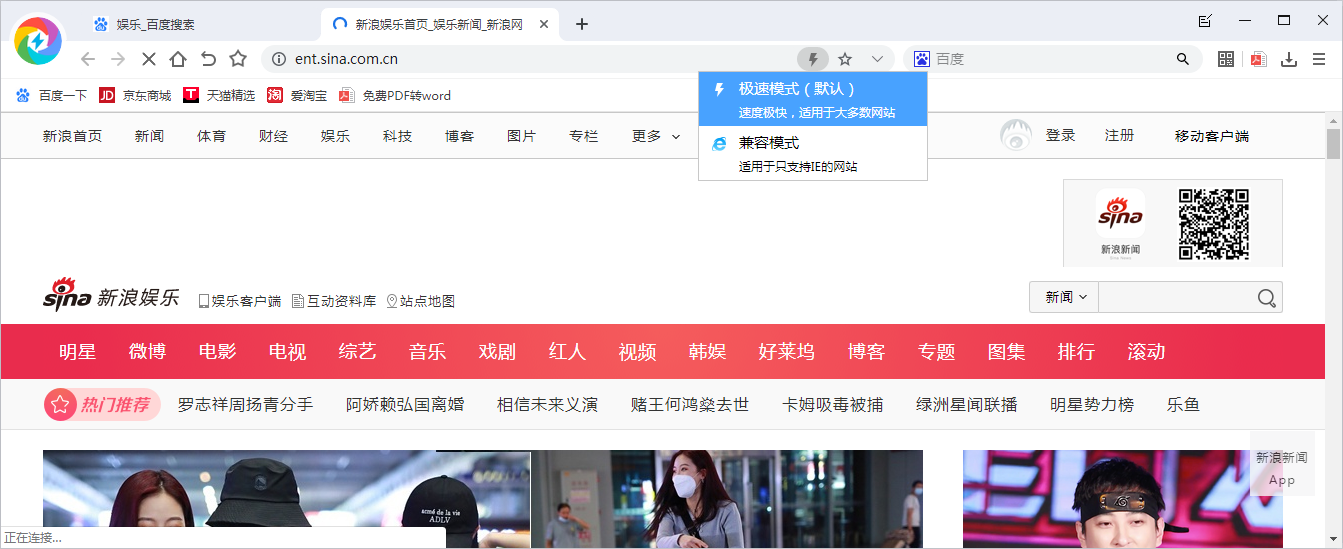 2、进入网页界面,选择任一娱乐网页,比如选择第一个“新浪娱乐首页”。