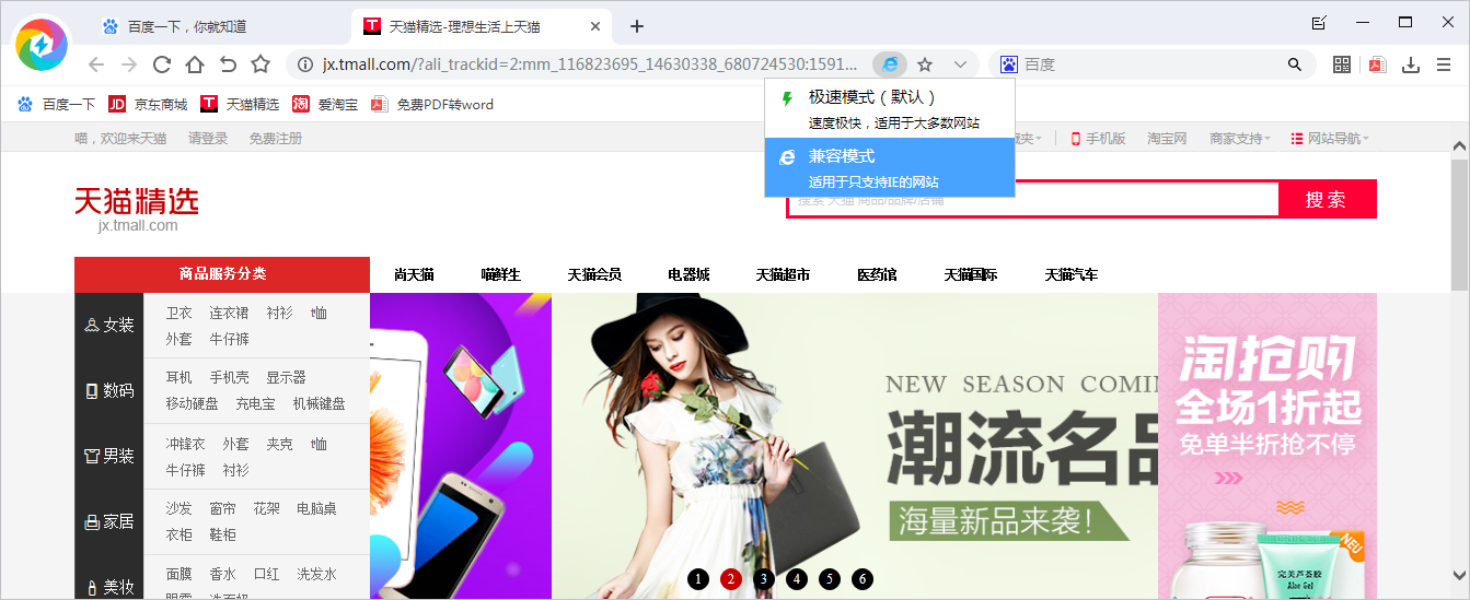 3、打开网页,点击地址栏右侧出现的闪电图标,在弹出的菜单中有极速模式和兼容模式两种浏览器内核,点击即可切换。