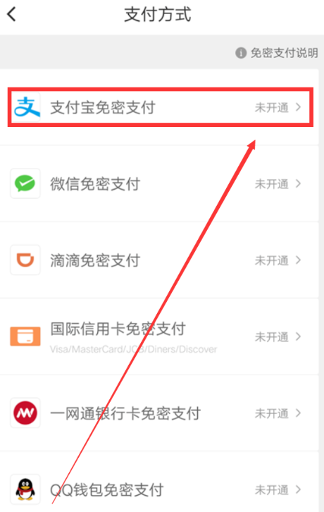选择经常使用的支付软件,例如支付宝,这里显示未开通,点击开通,根据提示操作即可。