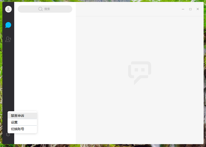 4、进入微聊PC版主界面,点击左下角齿轮图标,在其上拉菜单中点击【禁言申述】。