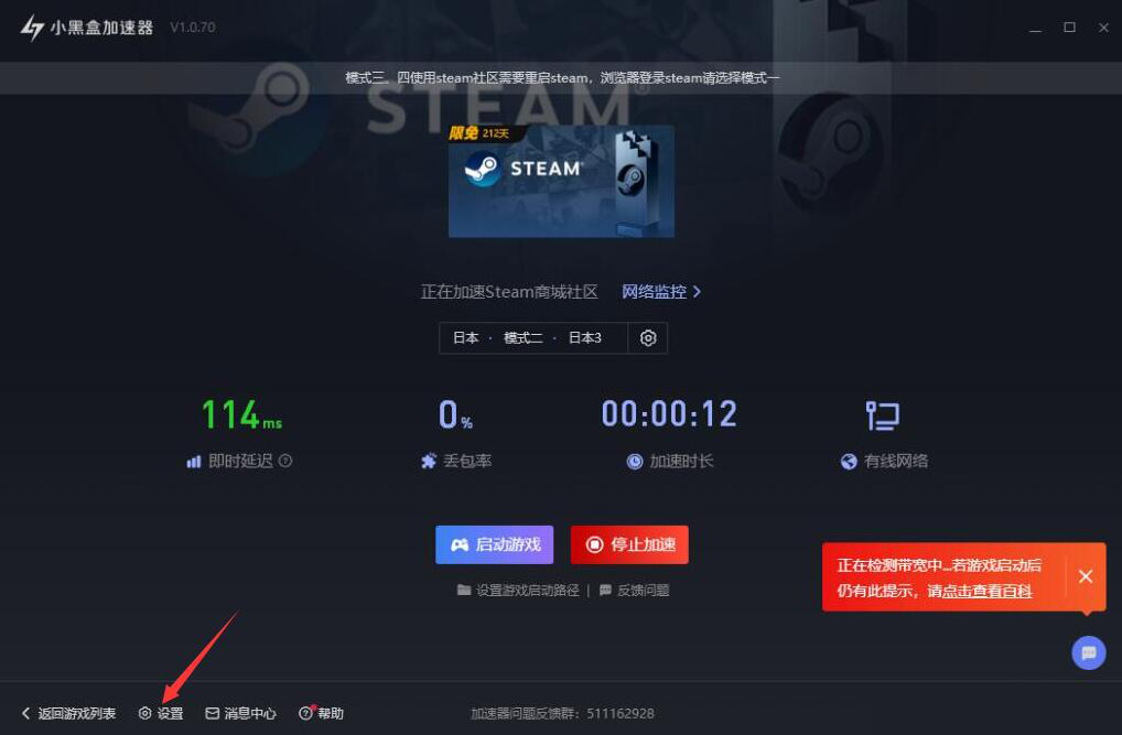 很多新用户在使用小黑盒加速器的过程中,往往会遇到无带宽的情况。明明自己已经点了开始加速,再点启动游戏,但结果仍然提示无带宽,搞得自己无法用小黑盒加速器来加速自己在玩的游戏。对此,很多用户就问到遇到这样的情况该怎么办?所以,本文将为大家讲解小黑盒加速器检测加速无带宽的处理方法,让大家正常使用小黑盒加速器来加速游戏。