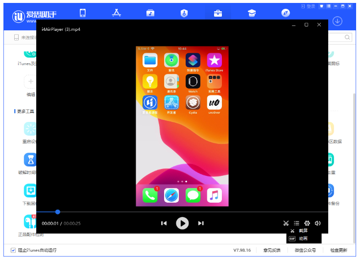 对比视频,GIF动图的体积更小,而且方便存储和分享,小编之前介绍了一些关于视频转GIF图片的方法,现在又有一个新方法。将爱思助手PC版升级到最新版本,大家可以利用爱思播放器将视频片段截取为GIF动图,具体操作如下。