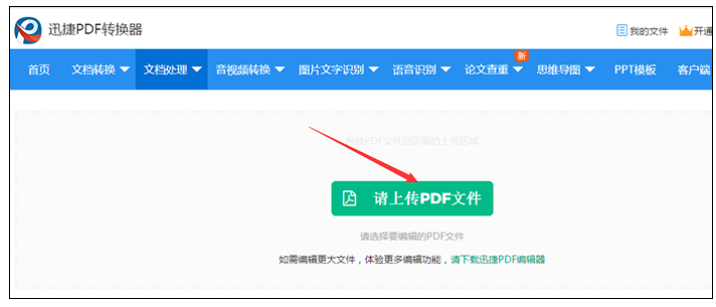 进入以下界面,点击【请上传PDF文件】,导入PDF文档,