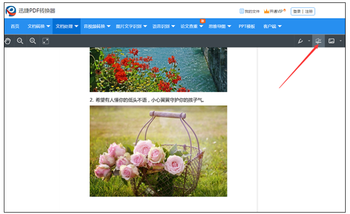 文件添加之后,在右侧的编辑工具中找到箭头指示的工具,