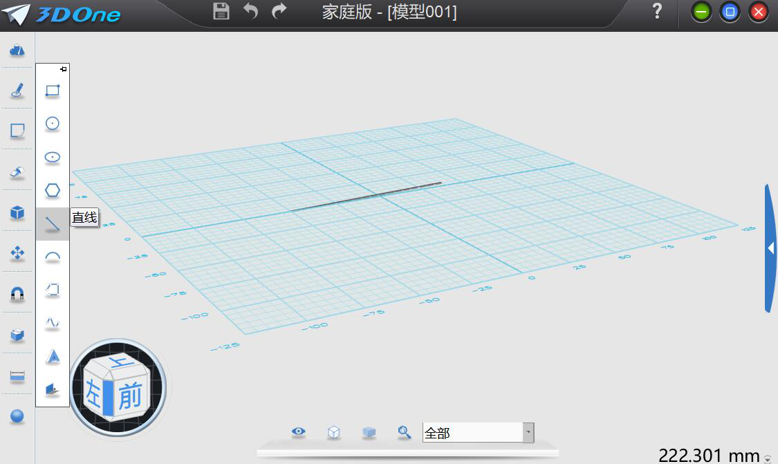 点击“草图绘制”工具中的“直线”,设定直线的长度便可以绘制3D One直线草图了。