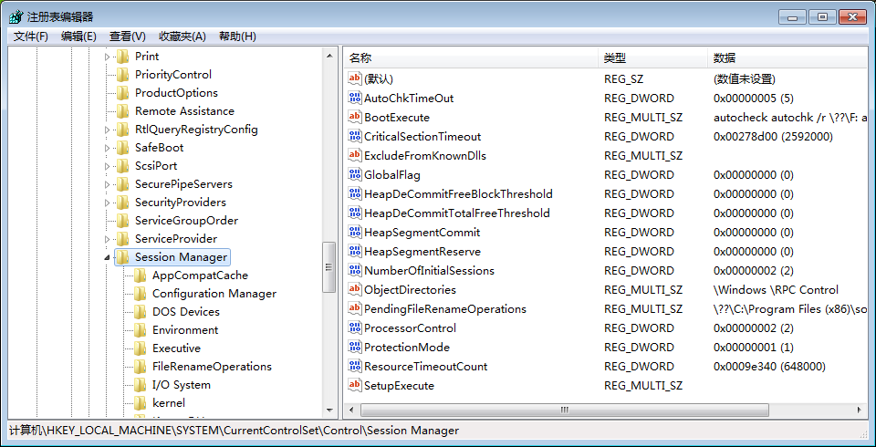 5、在【Control】展开列表中点击【Session Manager】。