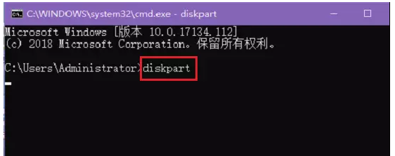 2、点按快捷键【Windows+R】,弹出运行对话框,输入cmd,打开命令行窗口,输入diskpart命令,回车,即可打开DOS命令环境下的磁盘管理窗口,