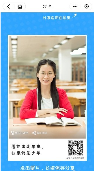 选好之后,小程序就会自动生成照片,点击照片,长按保存分享。