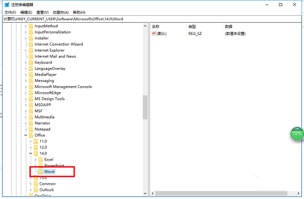 打开注册表编辑器,如图,依次点击【HKEY_CURRENT_USER/Software/Microsoft/Office/14.0/Word】,