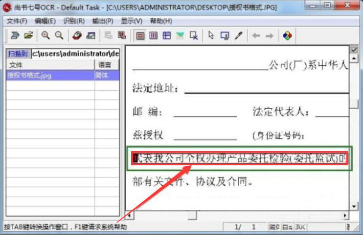 3、然后,在尚书七号OCR的右侧界面中,选中需要识别的图片上的文字段落。