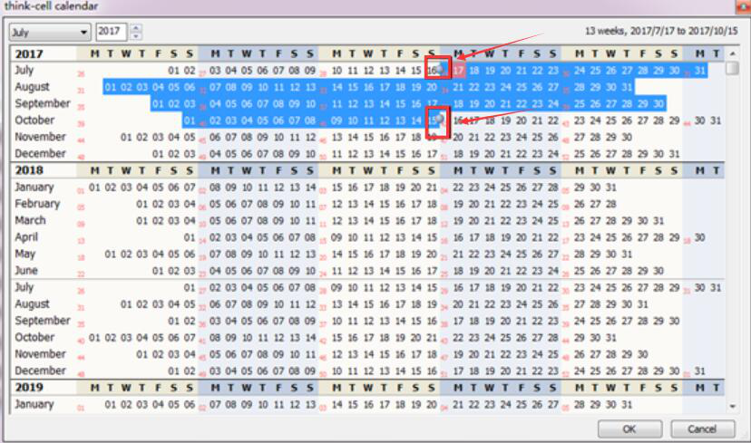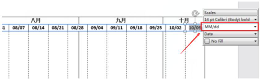 3、在Thinkcel日历中,可以通过它的拖动滑块手柄来调整项目的时间显示范围。