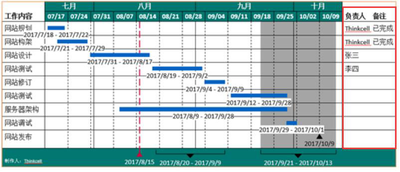 12、最后,Thinkcell甘特图还可以添加相关的负责人和备注,让项目更有效执行。
