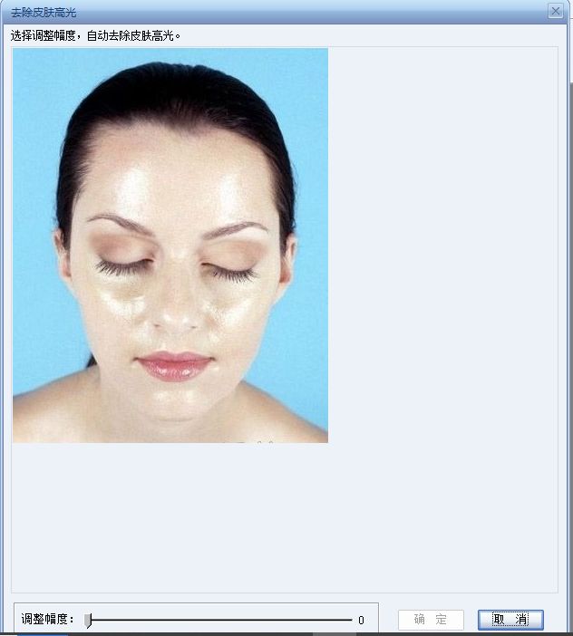 4、选好调整幅度,点击确定,软件就能自动去除皮肤高光,