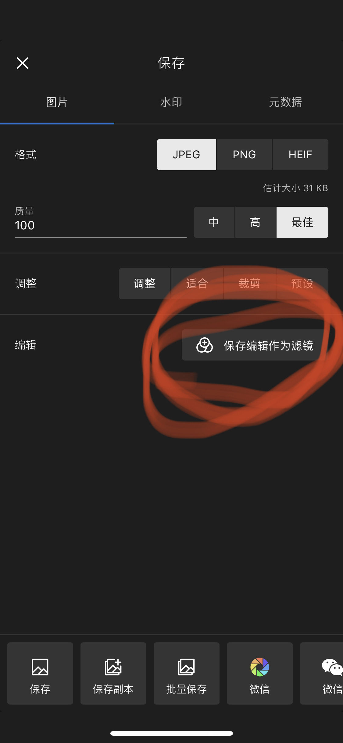 4.也可以在导出图片的时候点击图中按钮即可完成自定义滤镜。