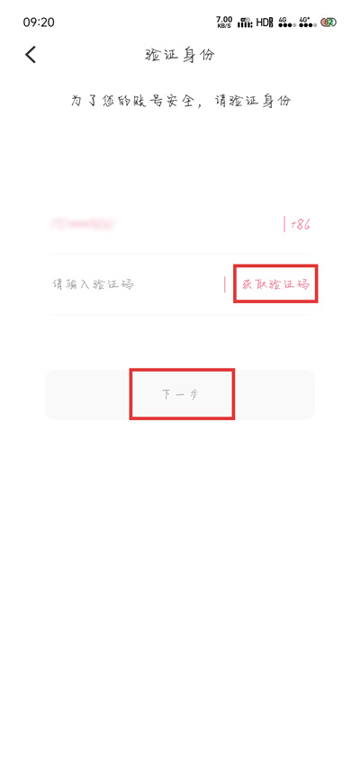 4.在申请注销之前,我们需要进行验证身份,点击【获取验证码】,接收并输入验证码后,点击【下一步】;