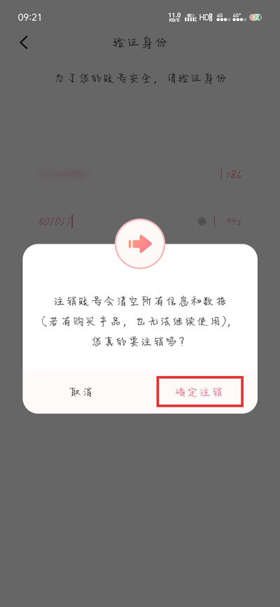 5.最后在弹出的窗口中点击【确定注销】一项,确定注销自己的准了账号;