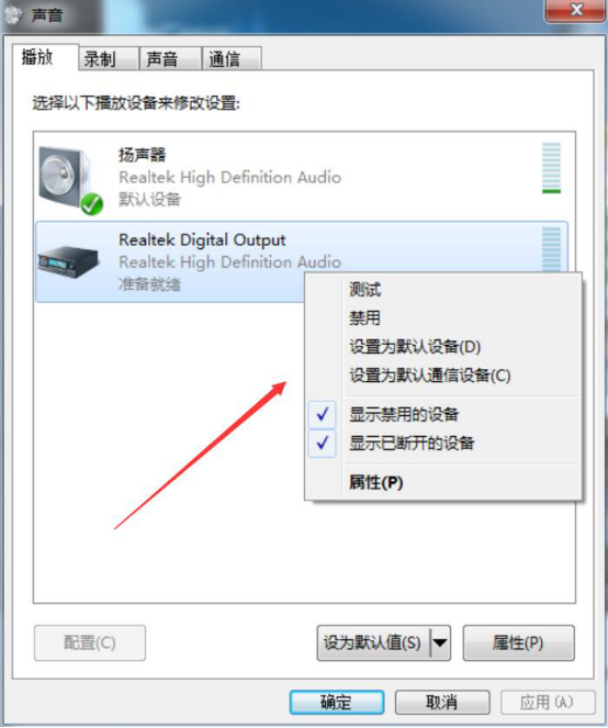 1.点击电脑任务栏右下方的小喇叭图标,进入音频设备管理。切换至“播放”选项卡,右键单击不需要使用的音频设备,并在右键菜单中点击“禁用”,以此来实现WeFun语音音频设备的切换。