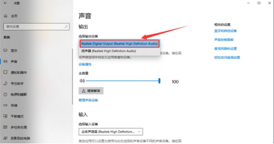 2.然后在声音设置页面的“选择输出设备”中,切换WeFun语音音频设备。