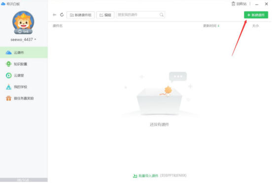 5.登录希沃白板,在希沃白板界面右上方,点击“+新建课件”按钮。