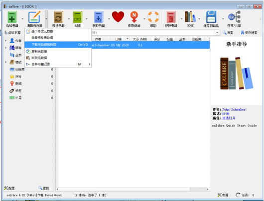 1)选择列表中的图书(支持多选),然后点击【编辑元数据】右侧倒三角,在其下拉菜单中点击【下载元数据和封面】,这样软件就会自动从亚马逊、谷歌和豆瓣等平台抓取选择图书的相关信息。