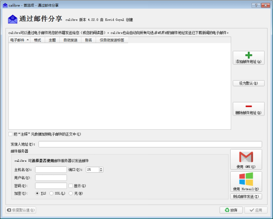 4、Calibre书库是保存在用户本地设备硬盘中的,但是用户同样可以通过内容服务器、无线设备、电子邮件等方式实现网络共享,方便自己在其他设备上阅读或分享给其他好友。