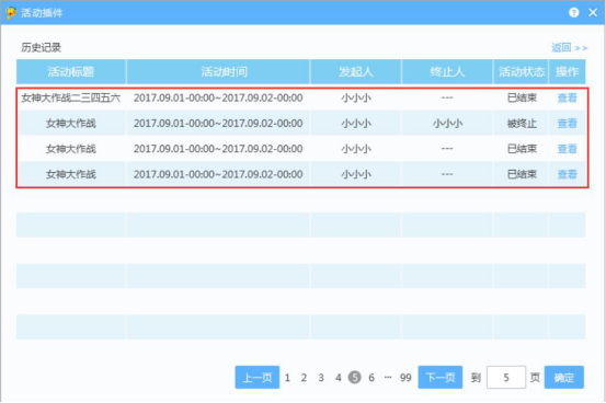 9.活动结束后,我们可以在活动插件的右上方点击“历史记录”,进入活动记录页面。