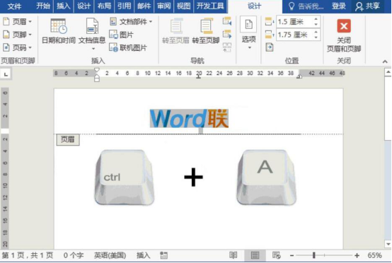 4.word自定义页眉样式制作完成后,利用快捷键“Ctrl+A”将页眉样式全选。