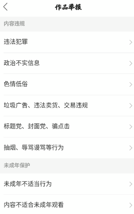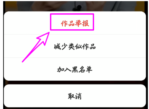 弹出菜单选项,点击【作品举报】,然后选择举报原因,