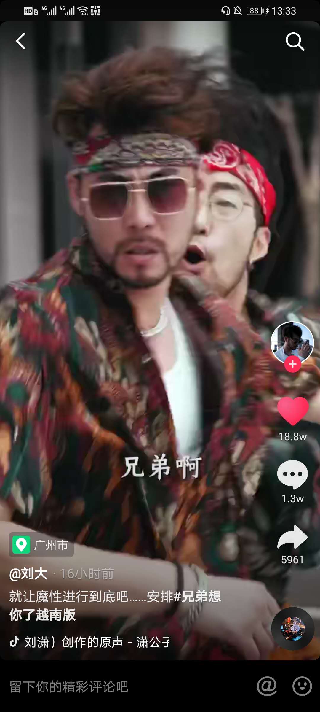 大家在抖音上听到的这首非常好听的歌曲名字叫做《Huynh Đệ À (SON2M Remix)》,这首歌是有越南一位歌手翻唱的歌曲,这首歌在抖音上被一个叫做“三斤哥流浪在越南”的抖友分享出来,基本每个视频都配的这首歌曲,不仅以此歌抒发出自己在国外流浪想念家乡的感情,又给众多远在他乡打工工作的抖友产生共鸣,从而让这首歌在抖音上爆火,接下来让我们一起试听下这首越南版的《兄弟想你了》。