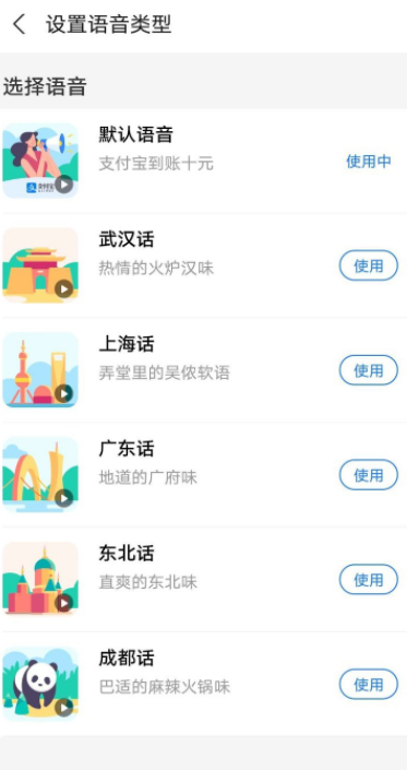 如图,现在设置语音类型,选择一种语音,然后点击【使用】选项,即可成功设置方言收款语音。