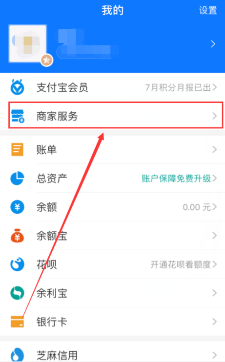 打开手机支付宝,进入首页,点击底部【我的】,进入个人中心,找到【商家服务】,点击它,