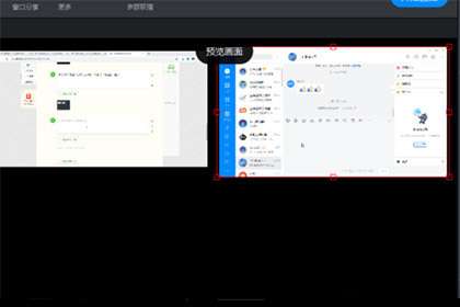 7、这样直播屏幕中就可以看到刚才选中的两个窗口了,添加后画面可能会有重叠,移动后通过调节小方块缩放窗口,将主讲窗口放大,辅助窗口缩小即可。