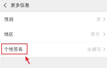 在更多信息页面,点击“个性签名”。