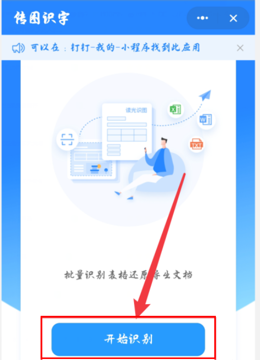 3、点击打开传图识字小程序,如图,点击【开始识别】按钮,