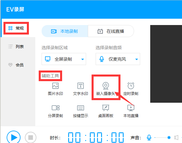 EV录屏将自己画面录制进去教程