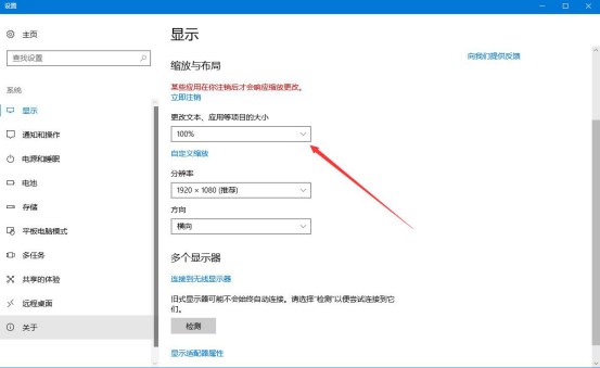 2.然后,进入电脑的显示设置页面,可以看到它的分辨率是1920*1080,显示的缩放比例是150%。就是因为显示的缩放比例过大,才导致了用户点击头榜直播盒子直播特效的时候,它总是出现闪退的情况。