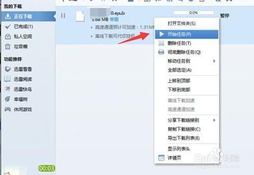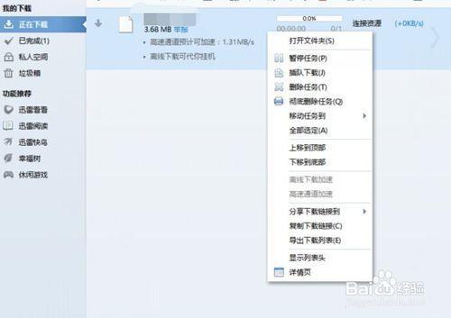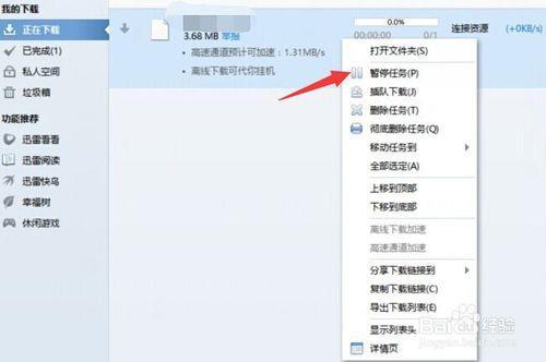 然后,我们再一次右键这刚刚暂停的下载任务。